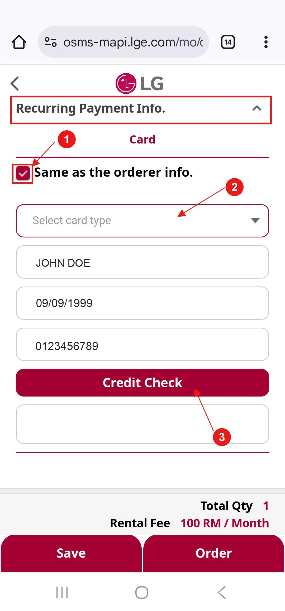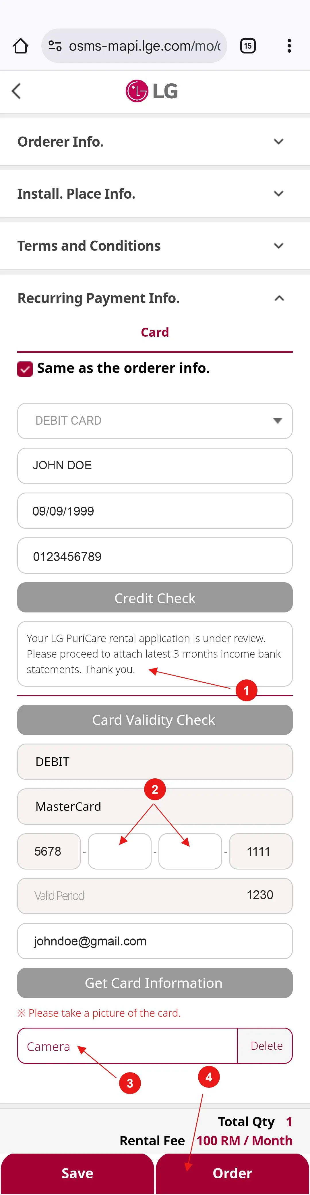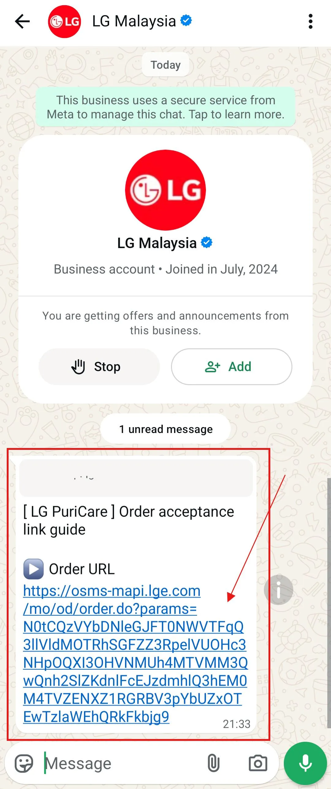 Once your agent enters your details into the LG system, you will receive an order link from LG via WhatsApp.