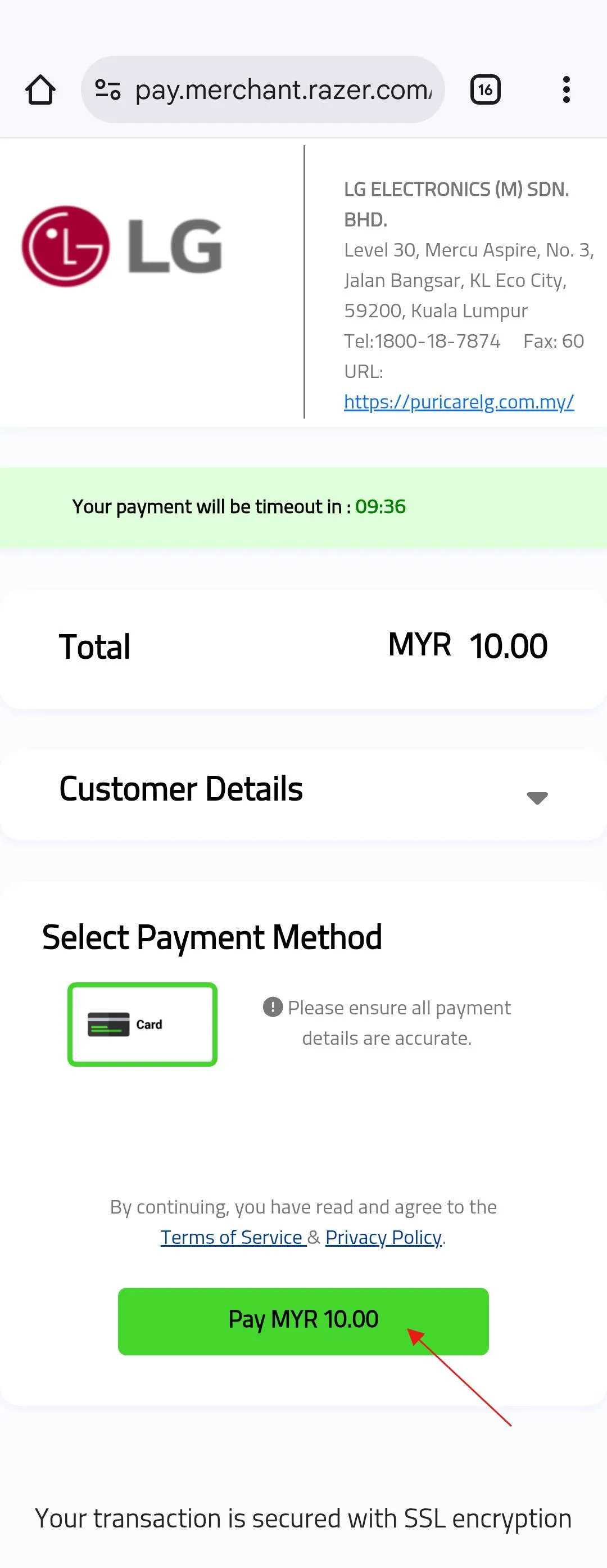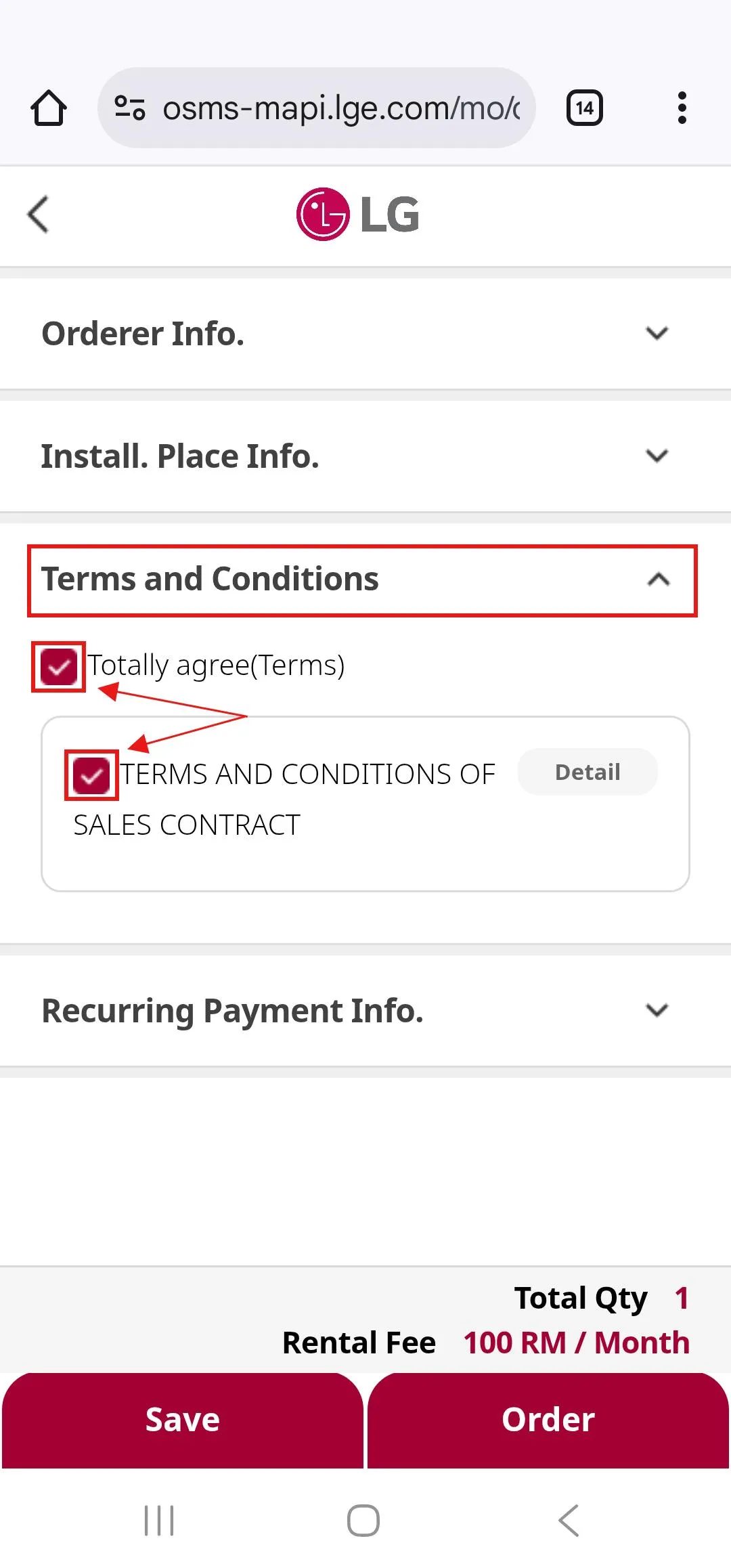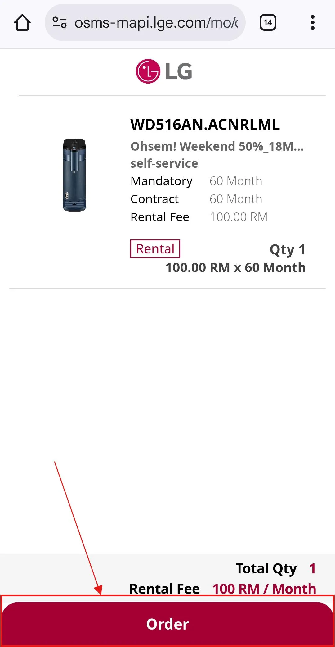 You will see the LG Order Page after clicking the link from your whatsapp.