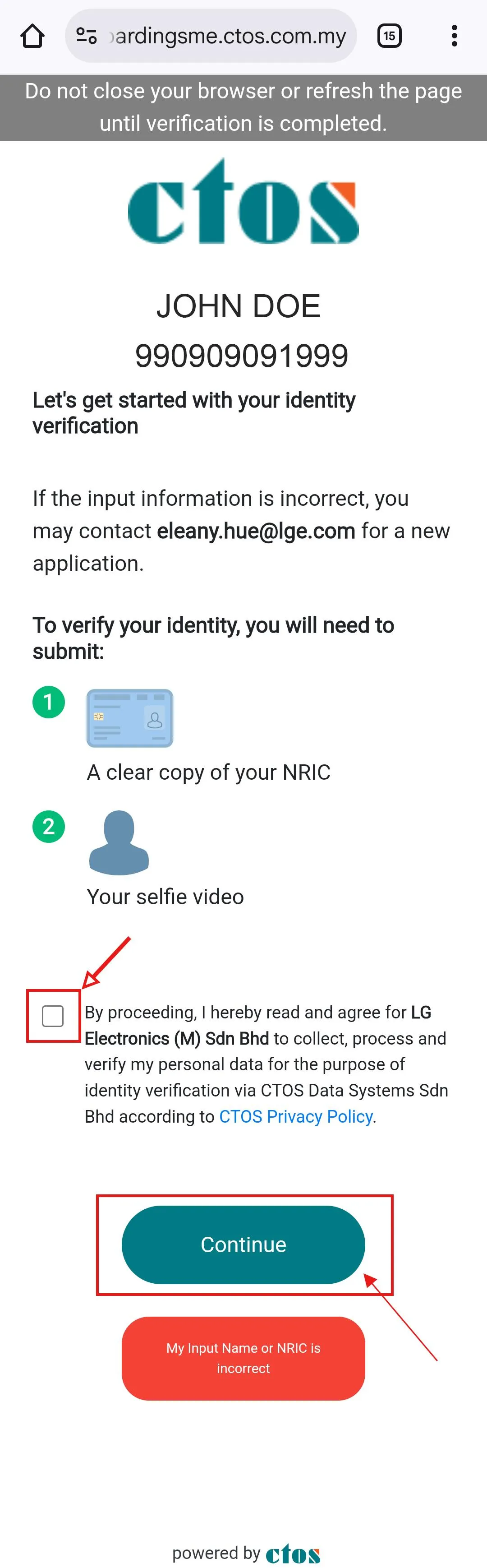 Once you identity has been verified, you will be redirected back to LG Order page.